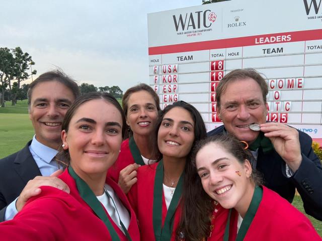 España se ha colgado este sábado la medalla de plata en el Campeonato del Mundo por Equipos Femenino 2025, Espirito Santo Trophy, que se ha jugado en Singapur, donde el criterio de desempate establecido -mejor vuelta descarta- ha favorecido a Estados Unidos. Los birdies que no entraron en la tercera jornada impidieron que Paula Martín, Andrea Revuelta y Carolina López-Chacarra coronasen con el mejor de los títulos a la Generación de Oro del golf español.