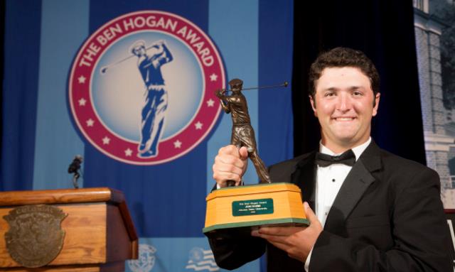 ▶ Pues bien, cinco años antes, nuestro querido Jon Rahm ya experimentó situaciones similares, pero en el ámbito amateur. Primeramente, en el mes de mayo de 2015, fue acreedor del Ben Hogan Award, un galardón que se entrega al mejor jugador del año en la Liga Universitaria norteamericana.